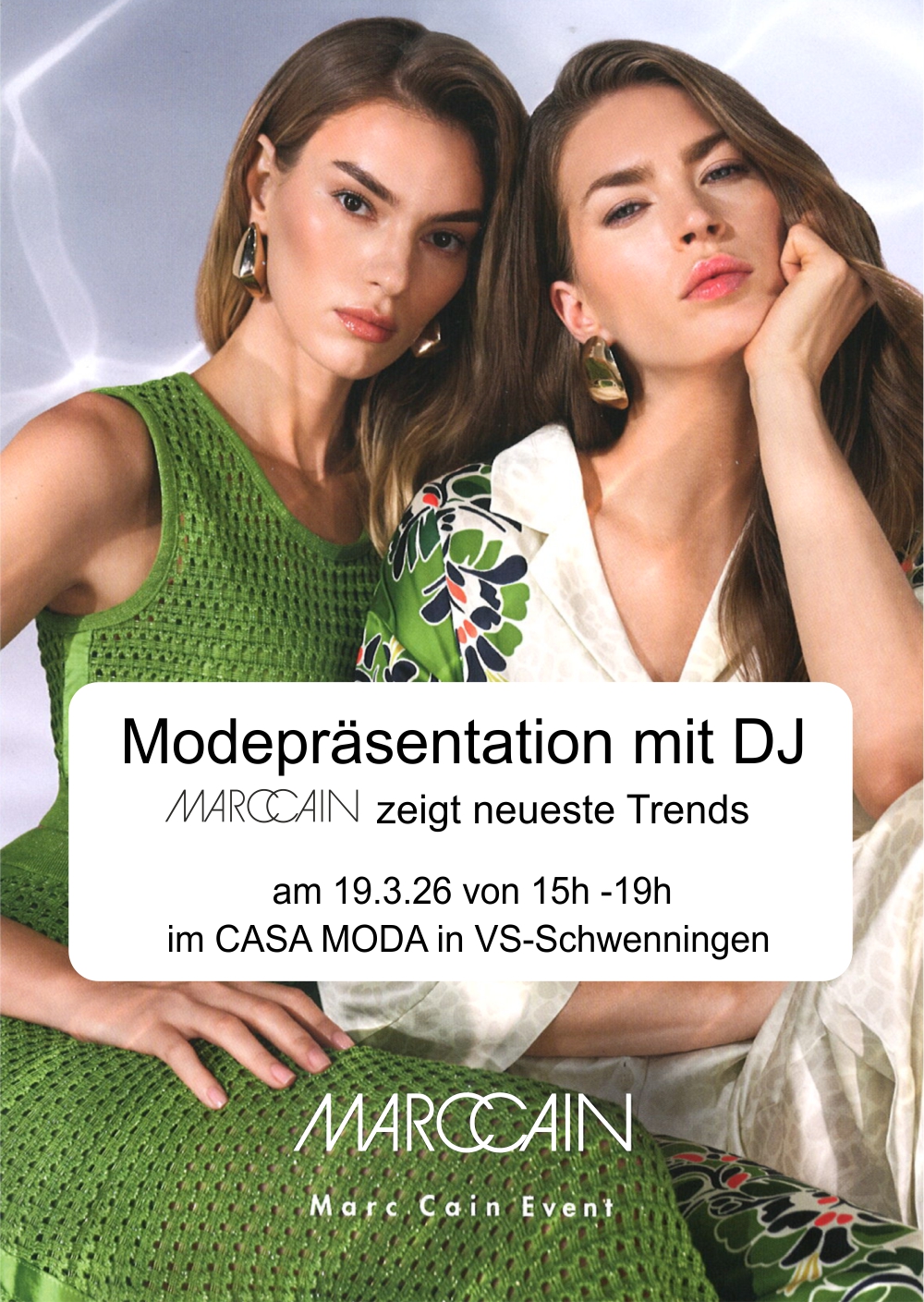 19.3.202615 Uhr bis 19 UhrModepräsentation MARCCAIN | ![]() | Präsentation mit live-DJMARCCAINmit den neuesten Trends